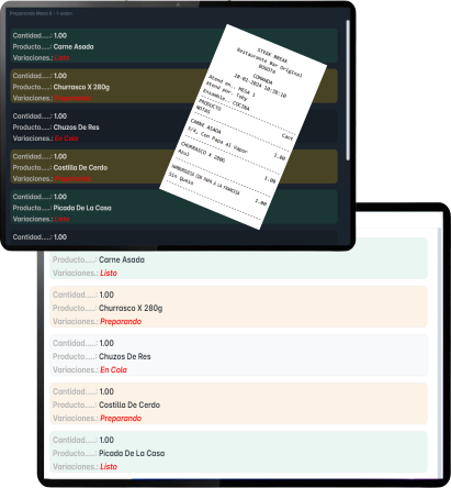 Recibe los pedidos en tiempo real directamente en la cocina con un sistema completo de monitores o Impresoras en la cocina. Acelera el servicio, reduce los errores en las comandas y gestiona los pedidos sin problemas