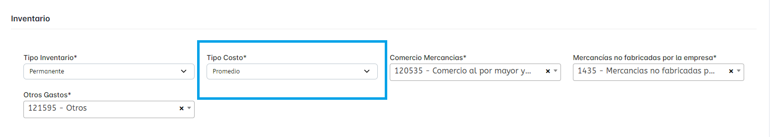 En AlladinERP es posible manejar el Inventario con los metodos Ultimo Costo o costo Promedio, para seleccionar el metodo, ingrese por Administracion > Contabilidad > Parametros una vez en la pagina, desplacese hacia abajo hasta el apartado Inventario. Por defecto el campo Tipo Costo esta en Ultimo y se puede cambiar a Promedio.