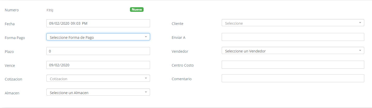 - Almacen: Seleccione el almacen de donde va a salir la mercancia que se dispone a Vender.